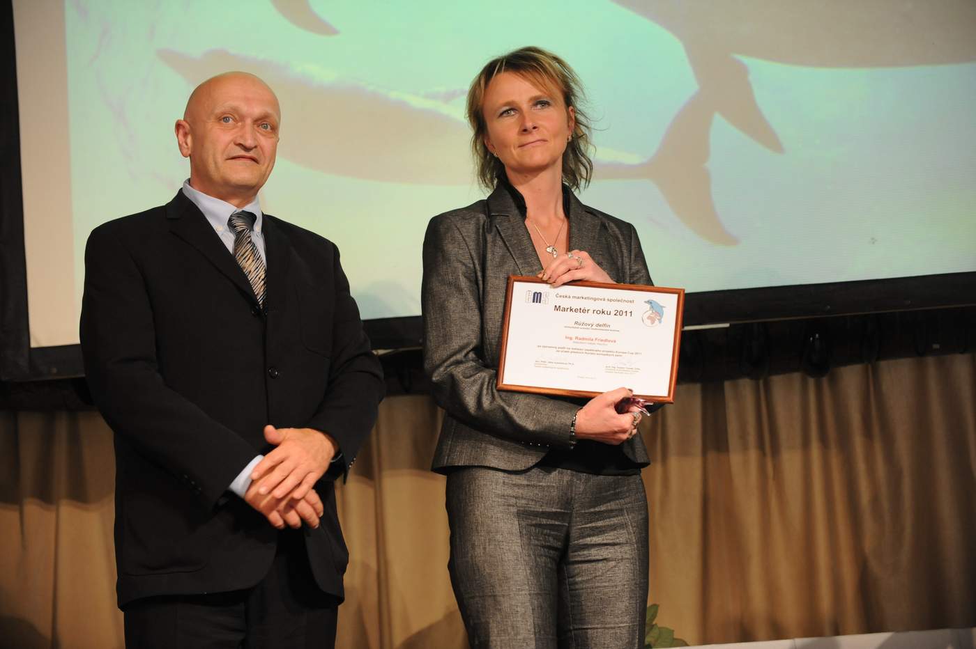 - Ing. Kateřina Drongová - Grada Publishing, a.s. - za dlouhodobě úspěšný projekt systematického vydávání původní i překladové marketingové literatury (cenu předal Jiří Mikeš)