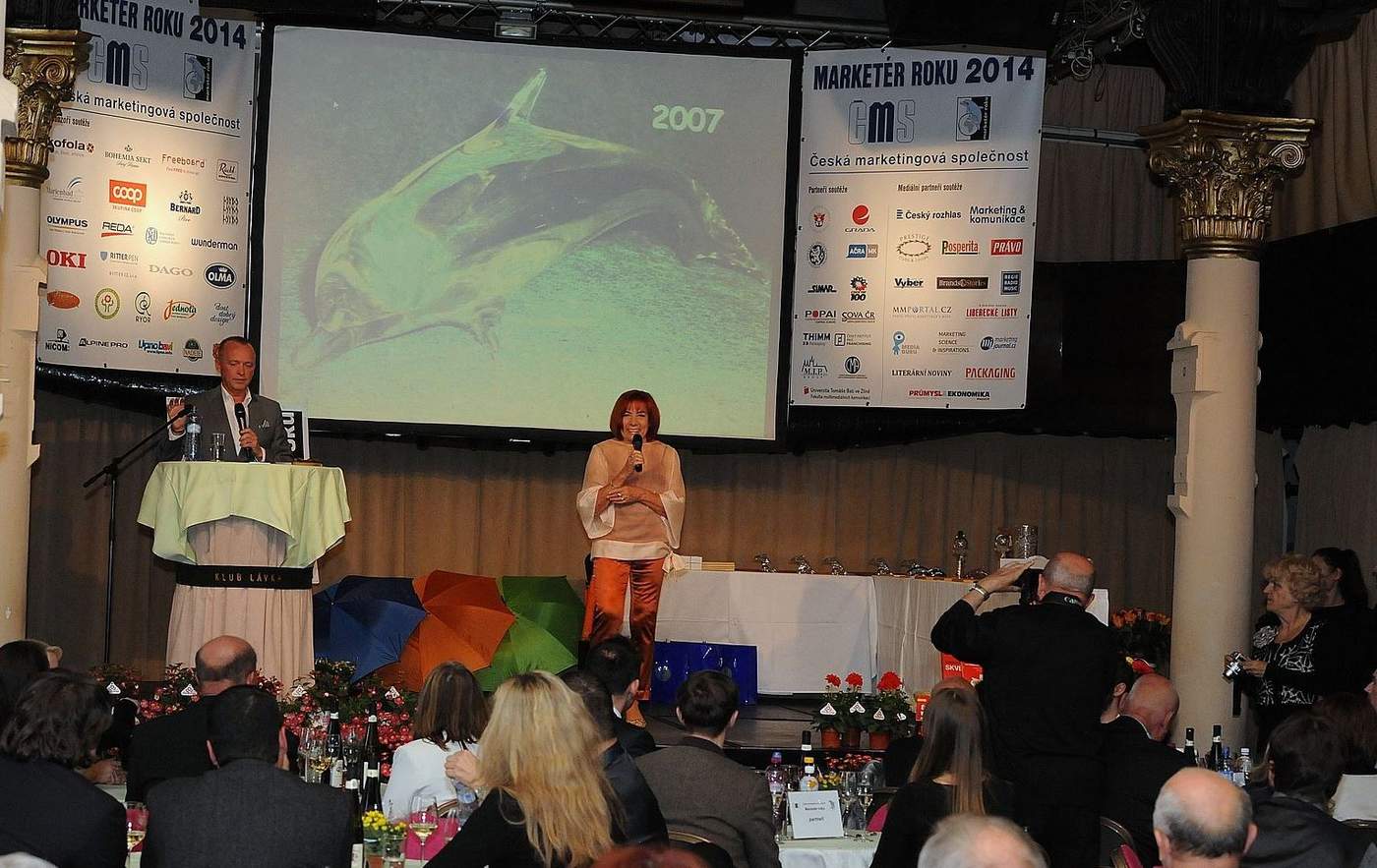 Na zahájení večera převzal z rukou prezidentky ČMS doc. PhDr. Jitky Vysekalové, Ph.D. cenu Čestný marketér prof. Ing. Gustav Tomek, DrSc., dlouholetý viceprezident České marketingové společnosti a předseda hodnotitelské komise soutěže Marketér roku.
