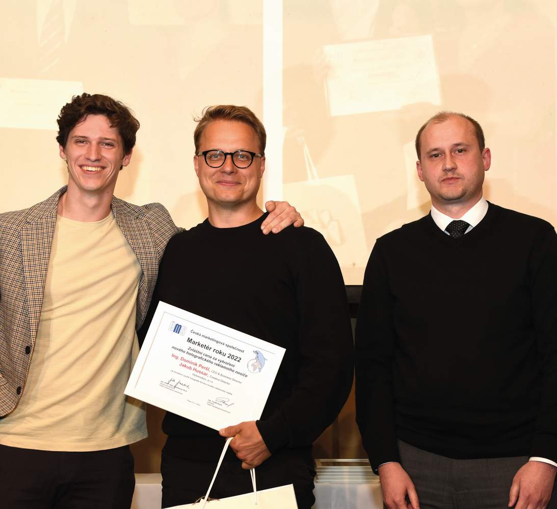 Ing. Dominik Peršl, CEO & Business Director, Jakub Hussar, Creative Director, Holomotion, s.r.o. - za inovativní využití holografie formou nového reklamního média